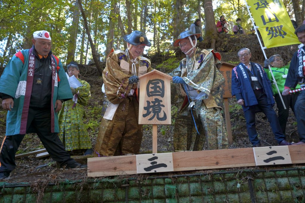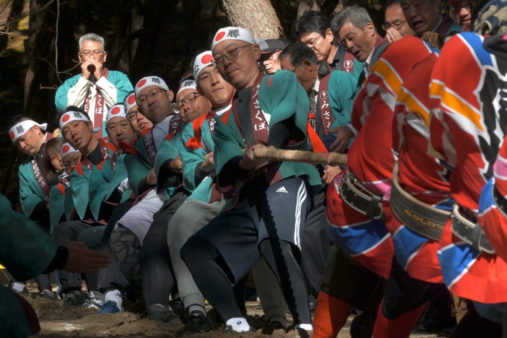 静岡・長野県境の兵越峠で行われ、勝った方が相手側に1年間1m領土を広げることが出来る。1987年から始まり、今では多くの観客が訪れるイベントとなっている。