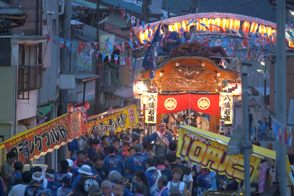 春日神社(向市場)、八幡宮(本町・神原)、諏訪神社(小畑)の三社合同による祭礼。健康、家業繁盛、交通安全、五穀豊穣を願い氏神様に感謝の念を捧げる。